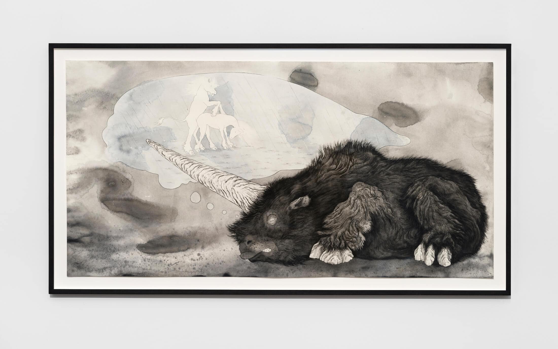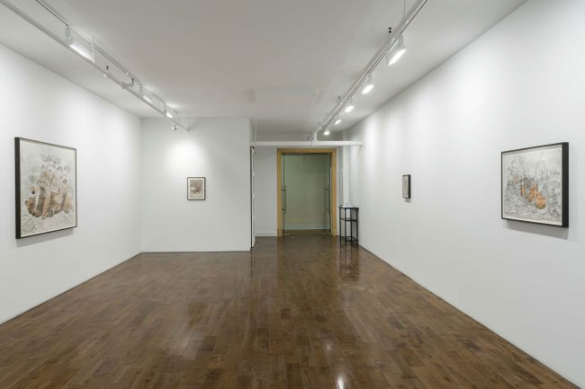 Jim Holyoak explores ink and graphite drawing in all its forms, working in a wide variety of formats, from postcards and books to monumental compositions adapted to the architecture of the spaces they occupy. Through each of his works, the viewer is transported into a world oscillating between the biological and the fantastic, inviting us to reflect on our relationship with non-human worlds. Rooted in empathy, Holyoak’s work engages with debates surrounding posthumanism and the ecological crisis. Inspired by the challenge of capturing deep time – the world as it was millions of years ago and speculative worlds yet to come – Holyoak depicts strange creatures and their habitats, the unknown and the invisible, beings too tiny to be seen or so ancient that they have turned to stone.
