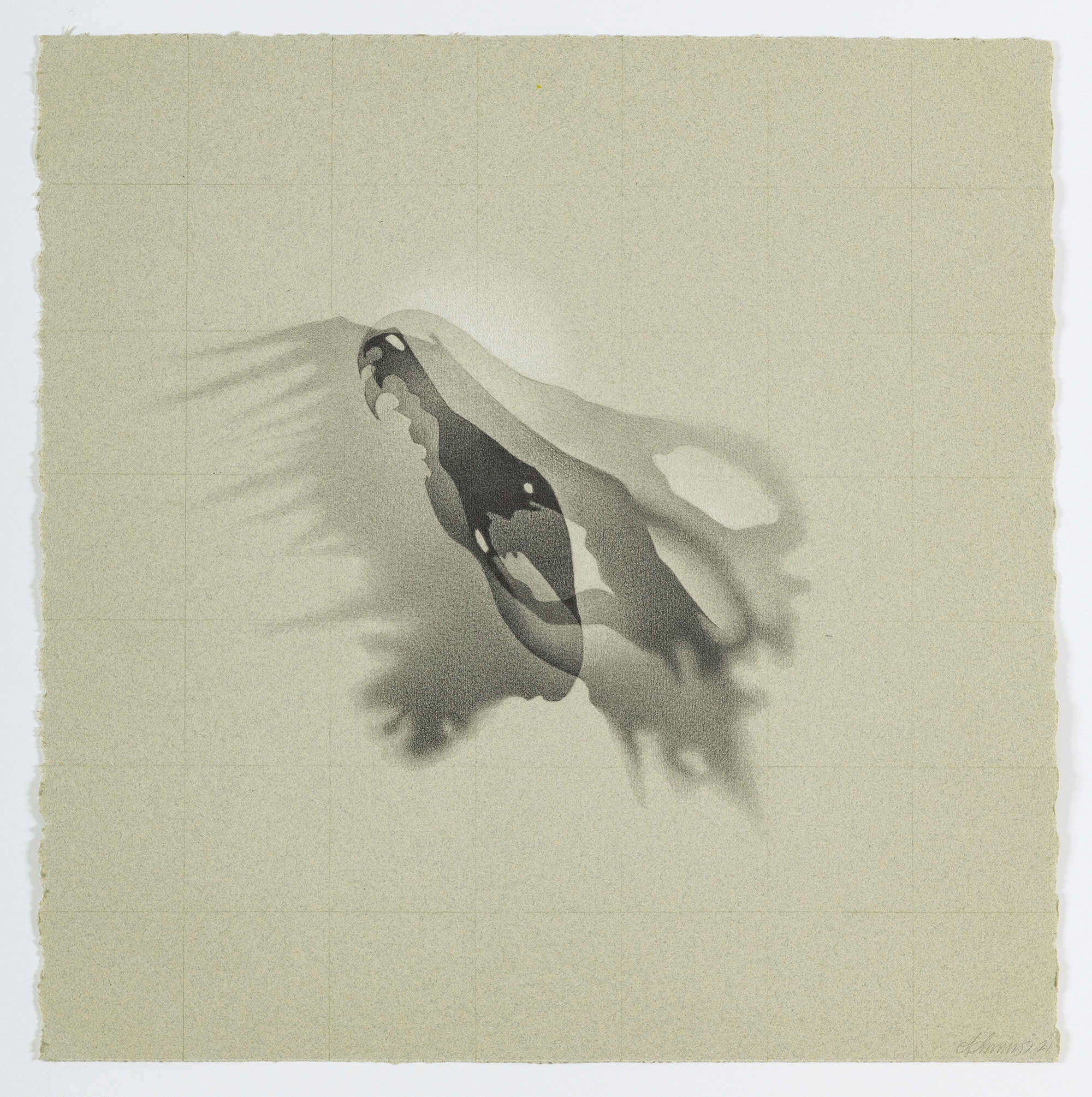 The drawings in her ongoing series Shadowland faithfully represent the cast shadows of preserved animal remains. They were developed during residencies in the Mammalogy Departments of the American Museum of Natural History in New York, the Canadian Museum of Nature in Ottawa, and the Redpath Museum in Montréal, where she was granted wide-ranging access to their vast collections. Working with animals considered endangered, or on the verge of extinction, she explored concepts of absence, empathy, and loss.
