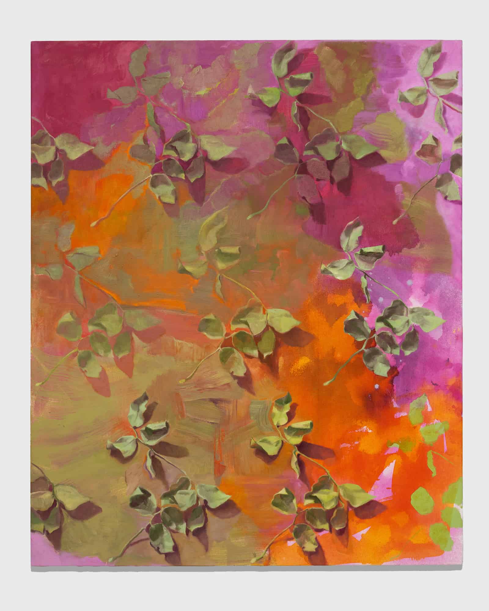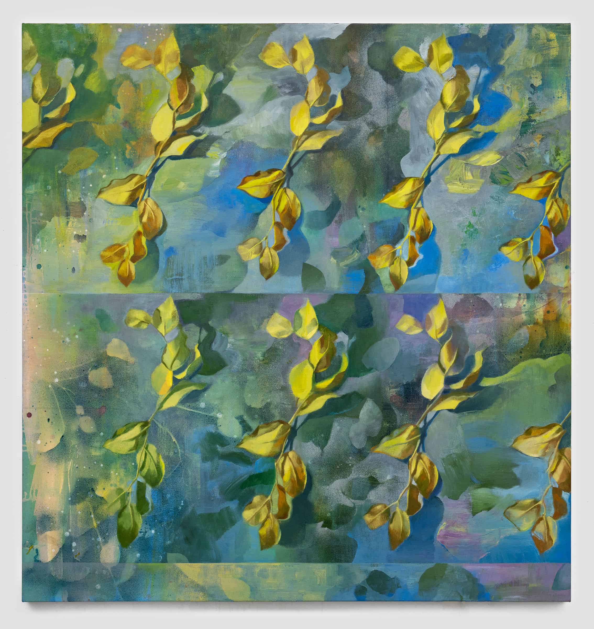 Her recent paintings focus on representations of dried leaves assembled from her own collections of preserved flora. Evoking the scientific tradition of specimen collecting and study, she paints the same motif, based on close observation, until the canvas is fully covered. During this process of duplication, the forms begin to vary in small ways. This echoes the repetitiveness of quotidian actions and circadian rhythms, always similar but never the same. In these works, as in life, repetition becomes a catalyst for transformation, signifying hope, perseverance, and dedication.
