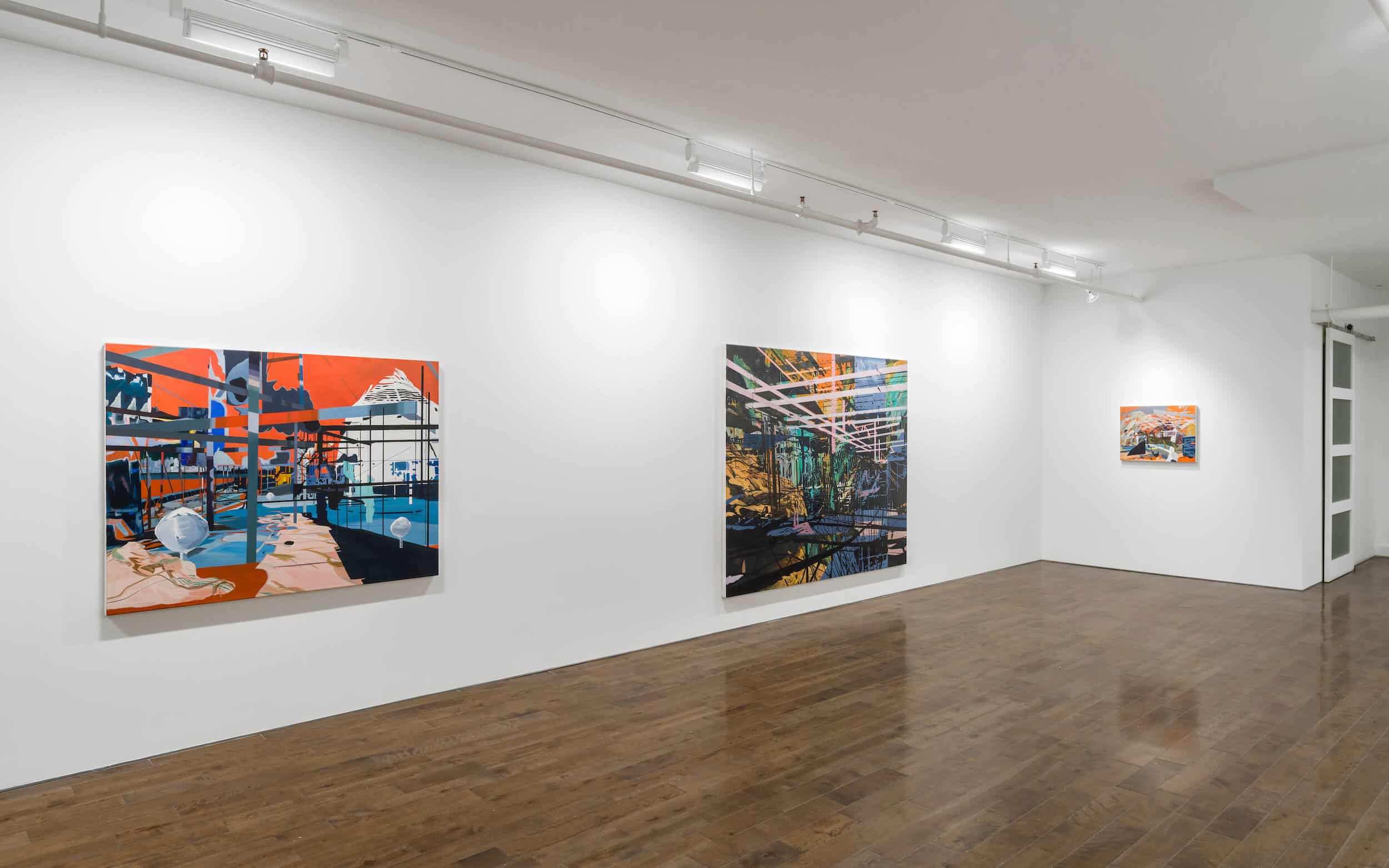 Matt Shane makes paintings, drawings, and room-sized collaborative installations that are anchored in the realm of landscape. His pictorial worlds follow a Romantic lineage and arrive at a mysterious borderland, empty of human inhabitants but carved and constructed with human intention. Dwellings, gardens, and piles of rubble are linked by associative threads in a dream-like web of proximity. Cities hatch and hunker into washed out, abstract zones, while mountains melt and coagulate in pools of colour.