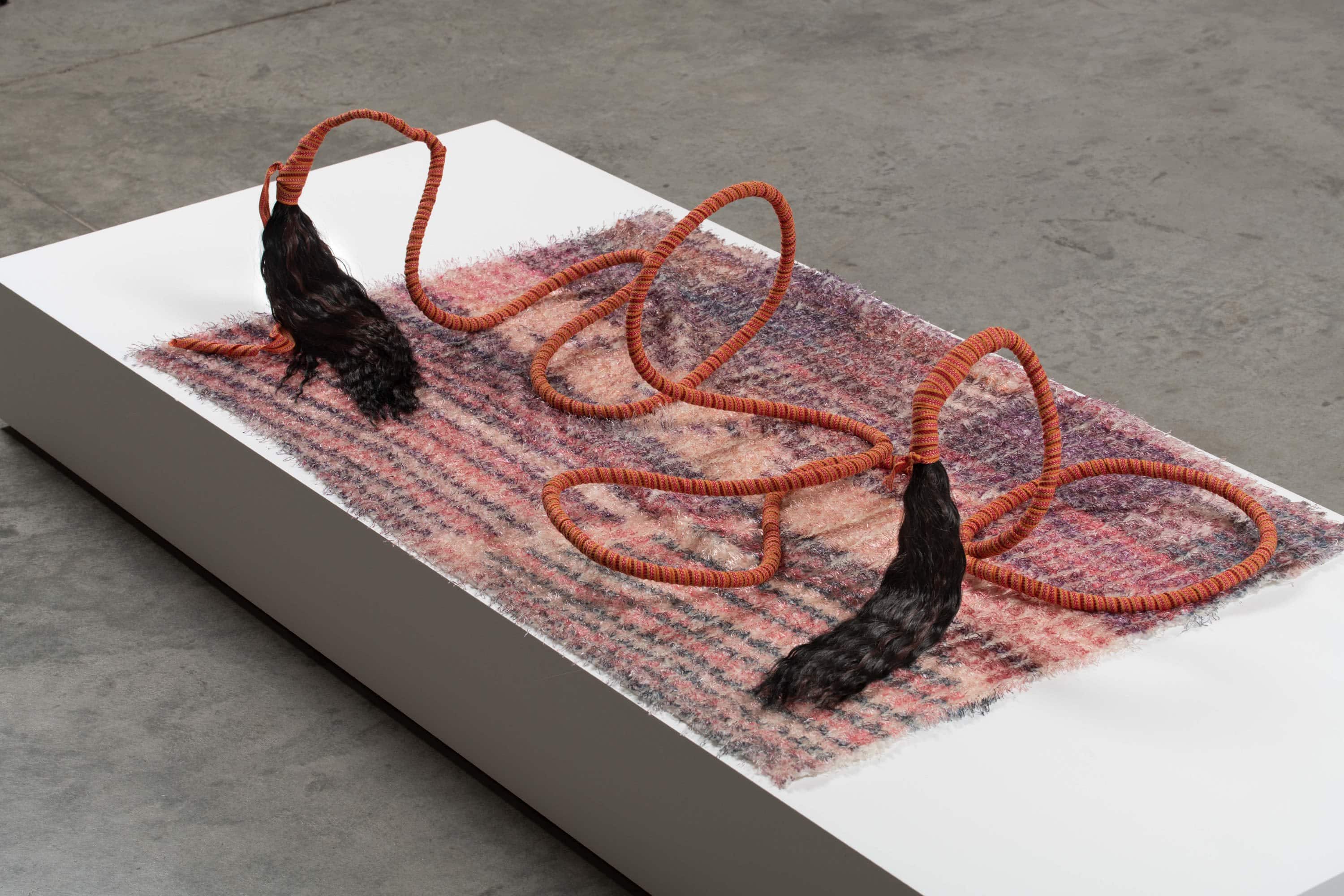 26 Sep 2025 Emma Artwork September 26, 2025 Emma BERIROUCHE FEDDAL Protecteur I, 2022 Kardoune, synthetic hair, printed fabric 33.00 x 118.00 x 74.00 cm. (13 x 46.5 x 29 in.) Inquire