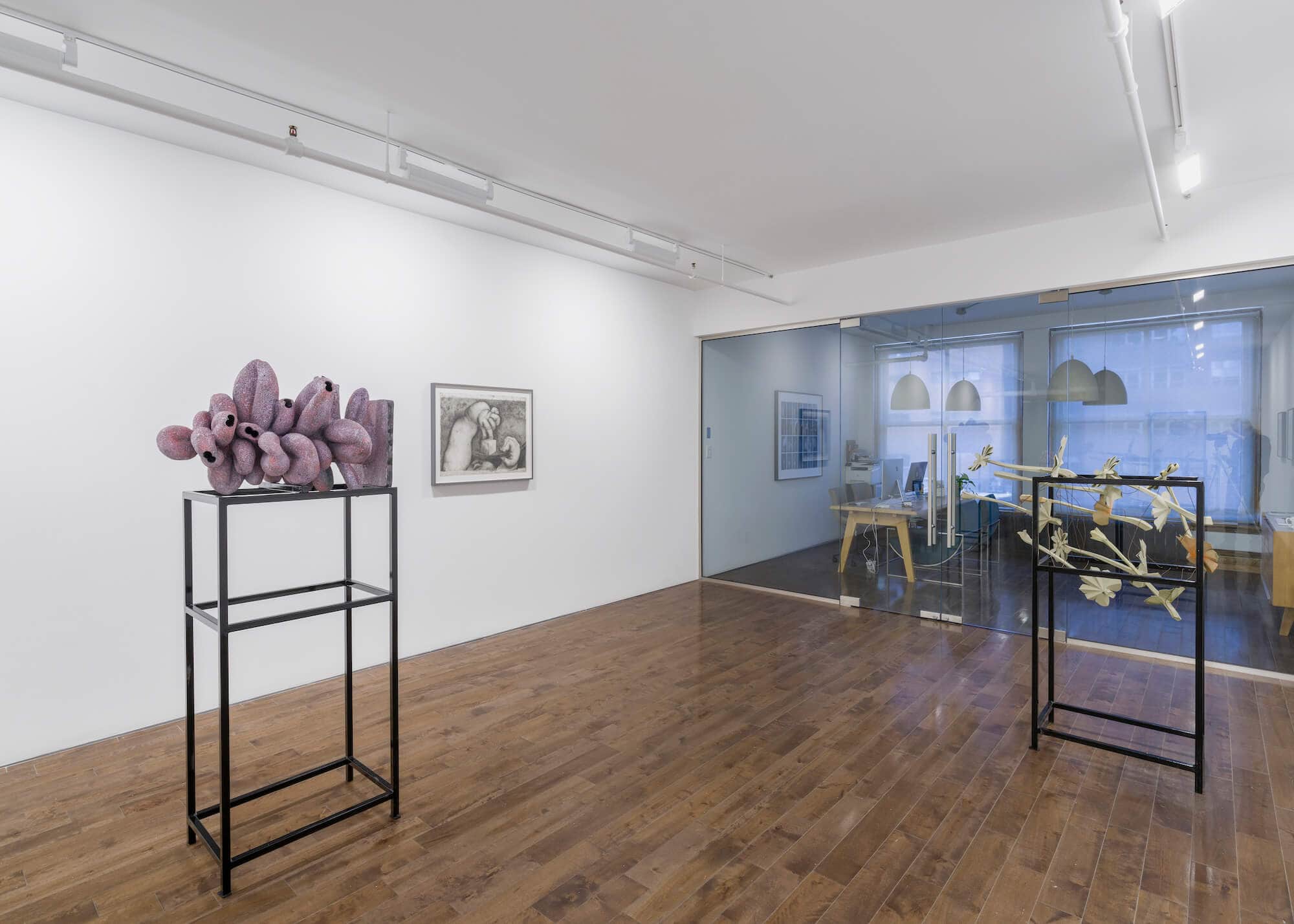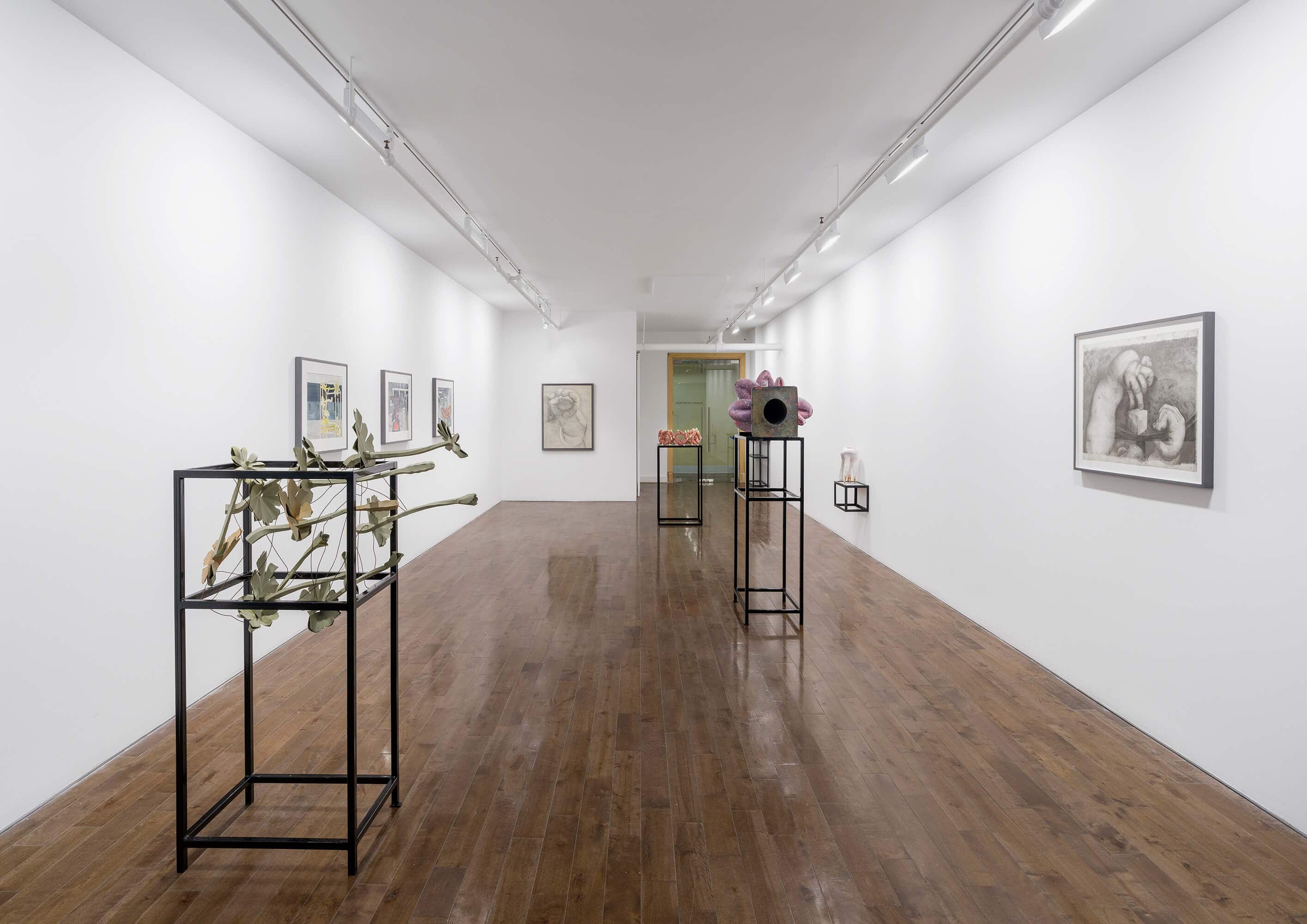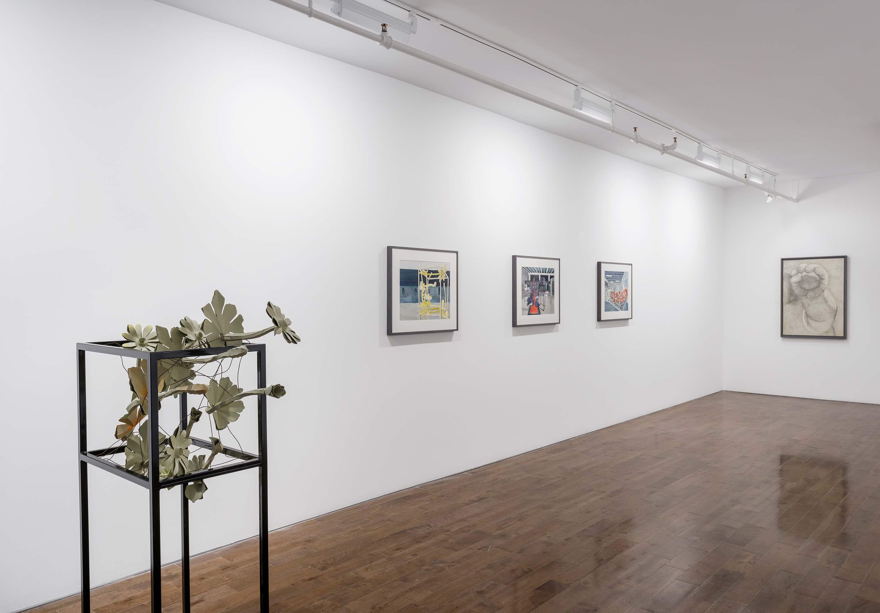 Les fleurs séchées de S’élancer vers la nuit ont été réalisées à partir de matériaux simples tirés de l’atelier de l’artiste, du bois, du papier et des craies de pastel. Au même titre que les maquettes qui occupent l’atelier, la sculpture occupe l’espace entre idée et objet, dessin et sculpture, proposition et réalisation. Les couleurs douces, poussiéreuses et sourdes de la végétation sèche célèbrent la beauté de la fin du cycle de vie d’une plante.