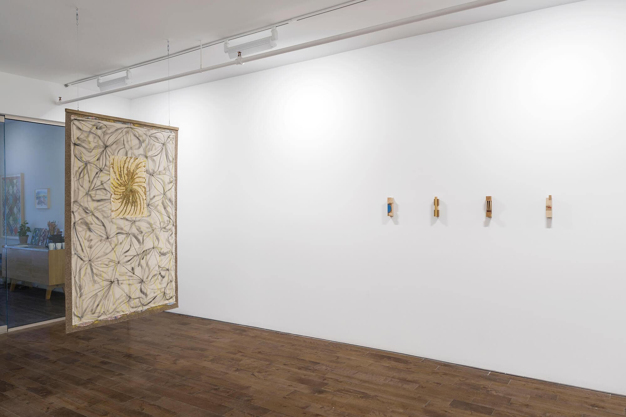 La pratique de Rachel Crummey est bien adaptée pour rendre hommage à la grille tout en la remettant profondément en question, tant en termes d’image, de médium que de cadre esthétique. En intégrant la peinture, le dessin, la sculpture, mais aussi le jardinage ou la cueillette, Crummey défie la grille même des matériaux traditionnels que peuvent utiliser les artistes dans une œuvre d’art. Les compositions subtiles et la beauté terreuse des œuvres faites de mycélium de Reishi évoquent les grilles organiques que l’on retrouve dans les environnements naturels.