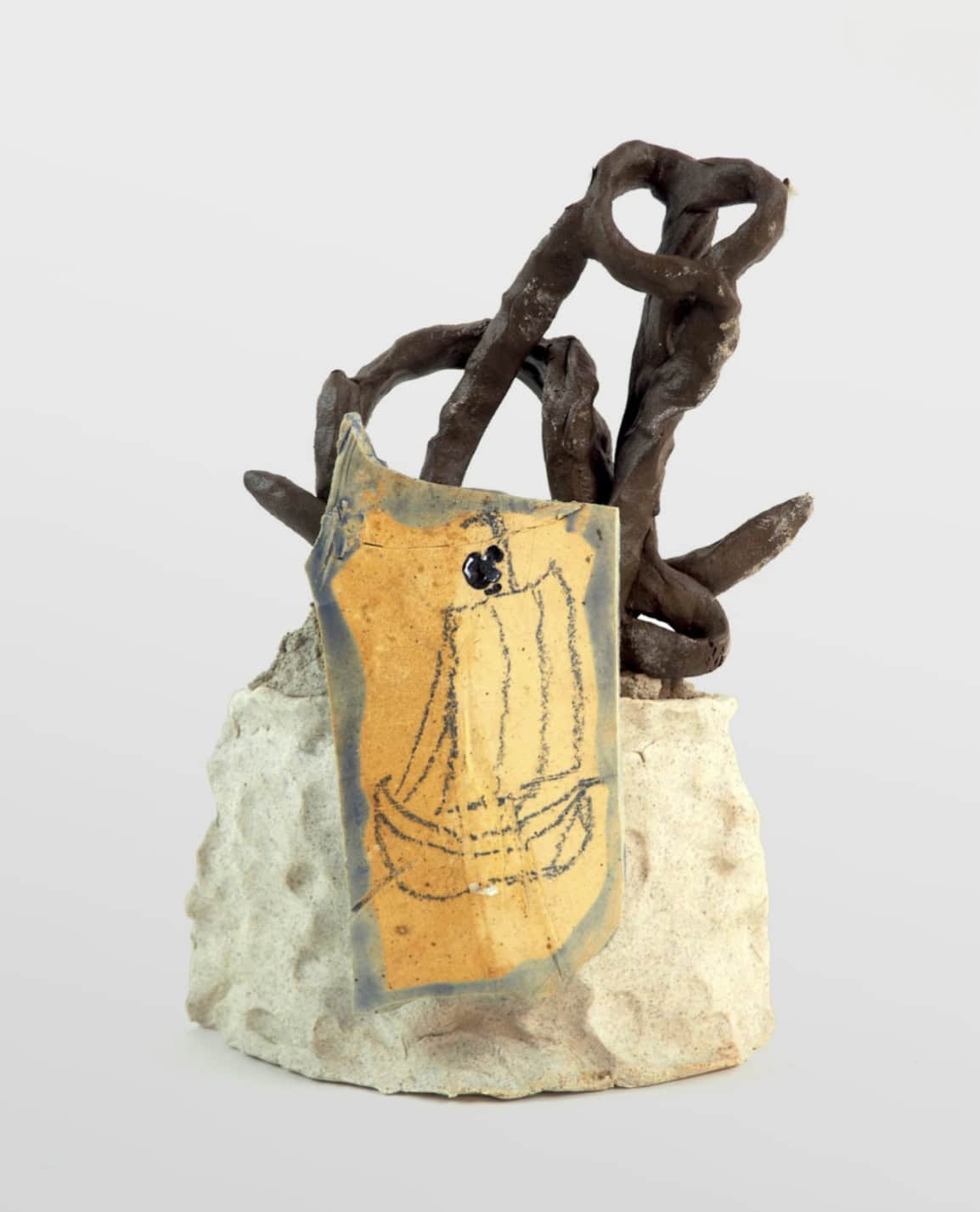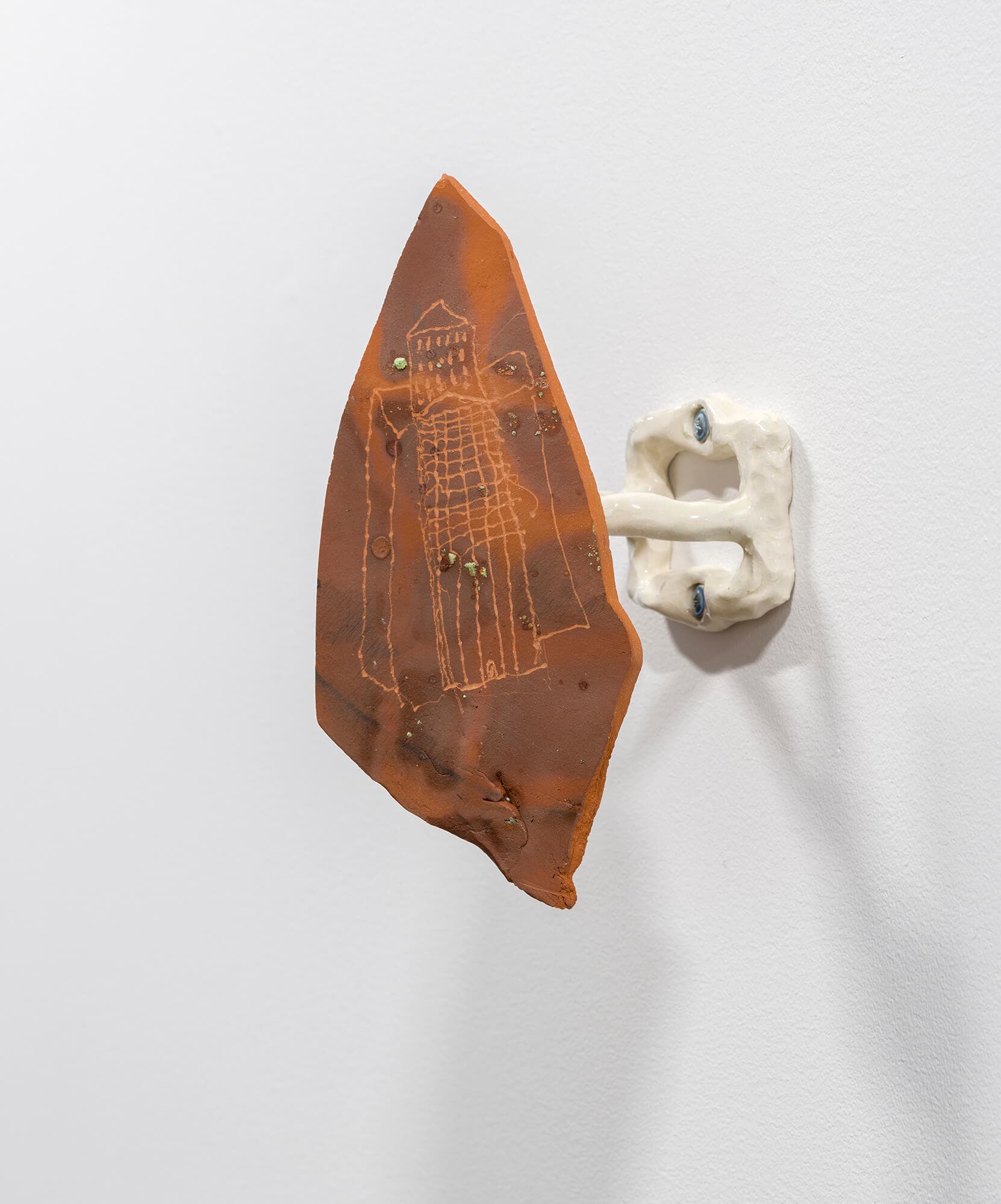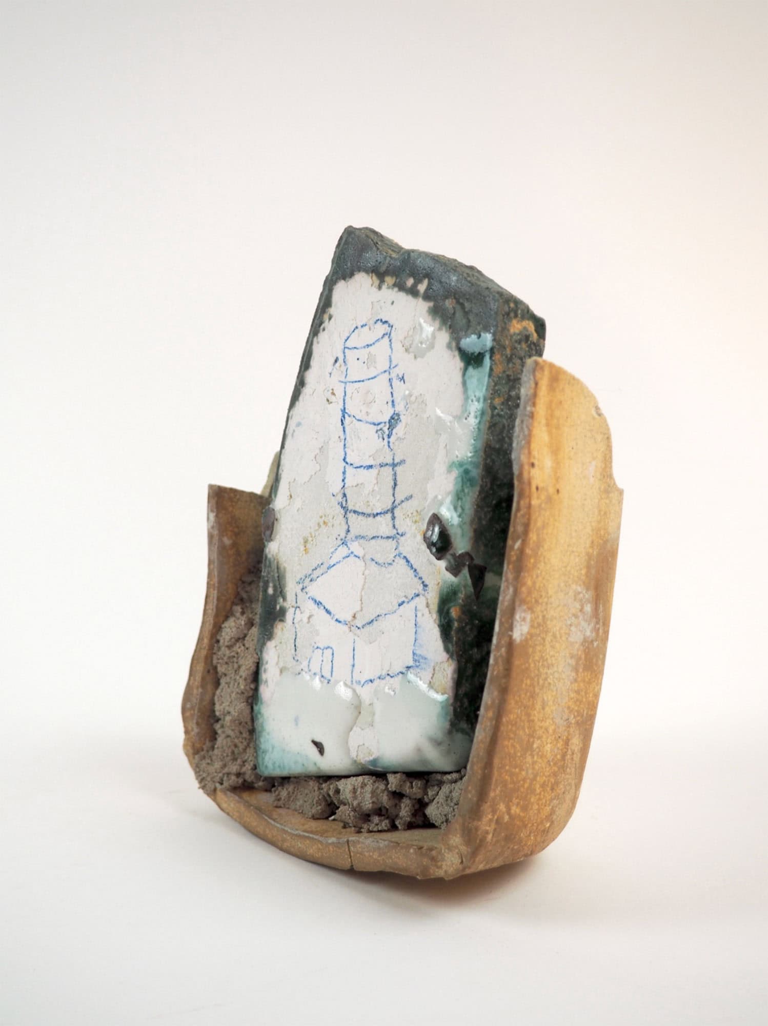 Alice Zerini-Le Reste, who is currently pursuing her Master’s degree in Stockholm, Sweden, also has a profound relationship with the landscape, shaped by her travels and years spent navigating the St. Lawrence River. This immersion in an environment marked by slowness and stillness has nourished her reflection on how a place can be transposed into an artwork. In this exhibition, the artist presents works exploring the interplay between line and surface, reusing ceramic firing plates considered obsolete. Bearing residual traces of previous firings – glaze overflows, heat marks – the artist inscribes drawings of architecture, objects, or myths, evoking the sediments of a bygone era. Through this act of material reappropriation, Zerini-Le Reste creates poetic palimpsests where narratives and temporal layers intertwine and where the archive encounters the myth.