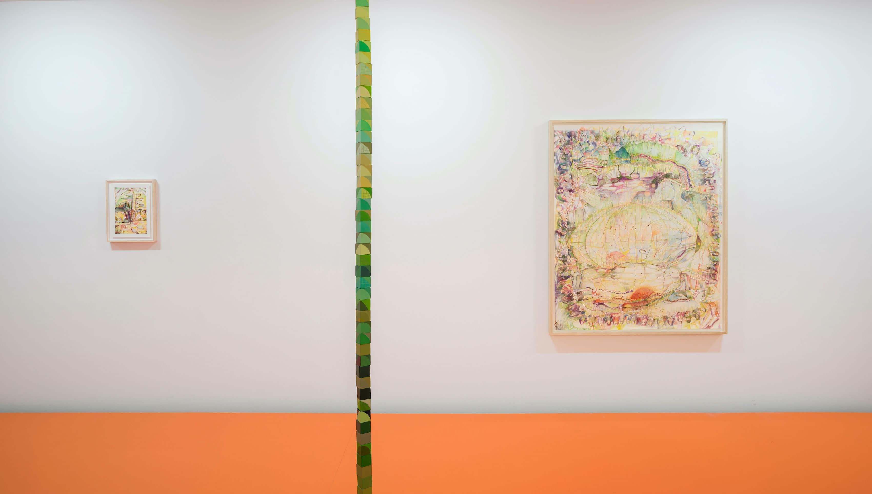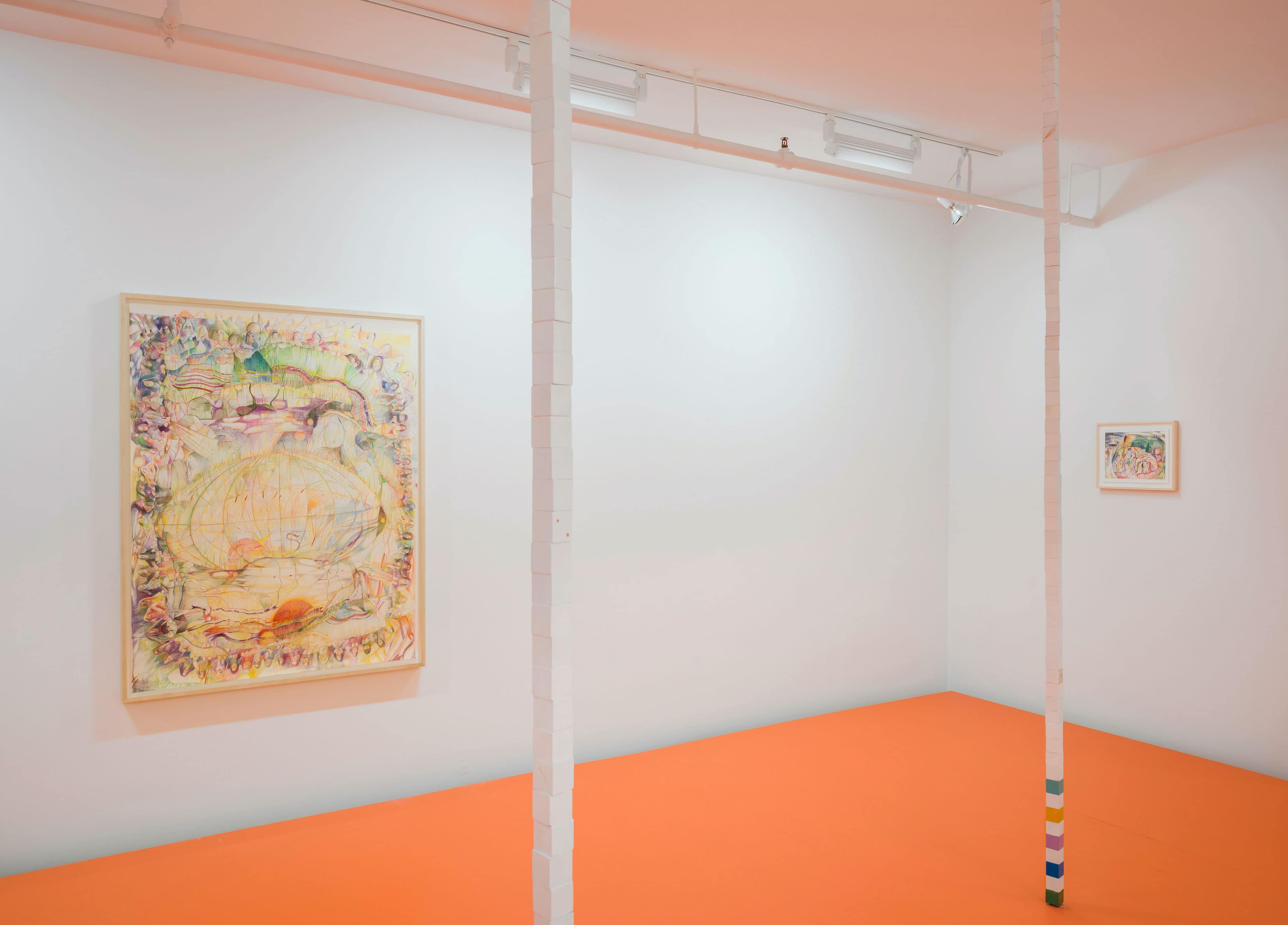 McBride Contemporain is pleased to present kiyânaw, Bea Parsons’ third solo exhibition at the gallery. Featuring vibrant colour pencil drawings, floor-to-ceiling wooden block towers, and a large-scale floor installation, the exhibition expands her practice beyond the two-dimensional form to unsettle colonial power structures and knowledge systems while asserting awareness, urgency, and collective action.