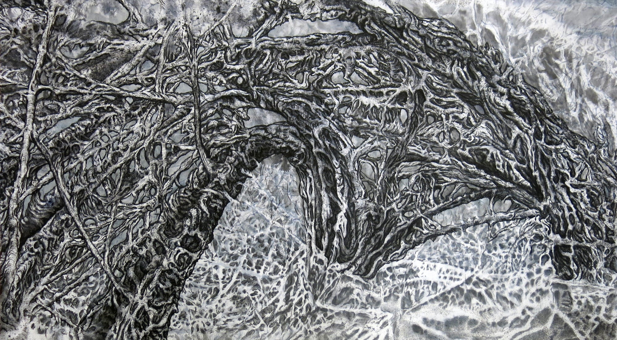 McBride Contemporain is thrilled to promote Arborescence, Jim Holyoak’s first exhibition in Nanaimo, BC, presented at View Gallery. The artist is exhibiting two ink paintings on this occasion, depicting dense and luxurious forest environments. These in-situ drawings, which the artist has long been well known for, cover nearly one hundred fourteen feet of the gallery walls. This impressive layout is paired with one hundred smaller drawings, and an environmental sound piece.