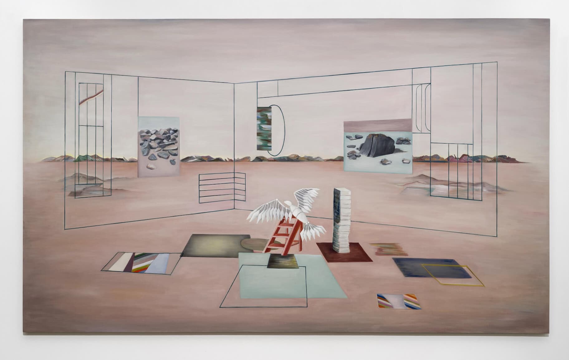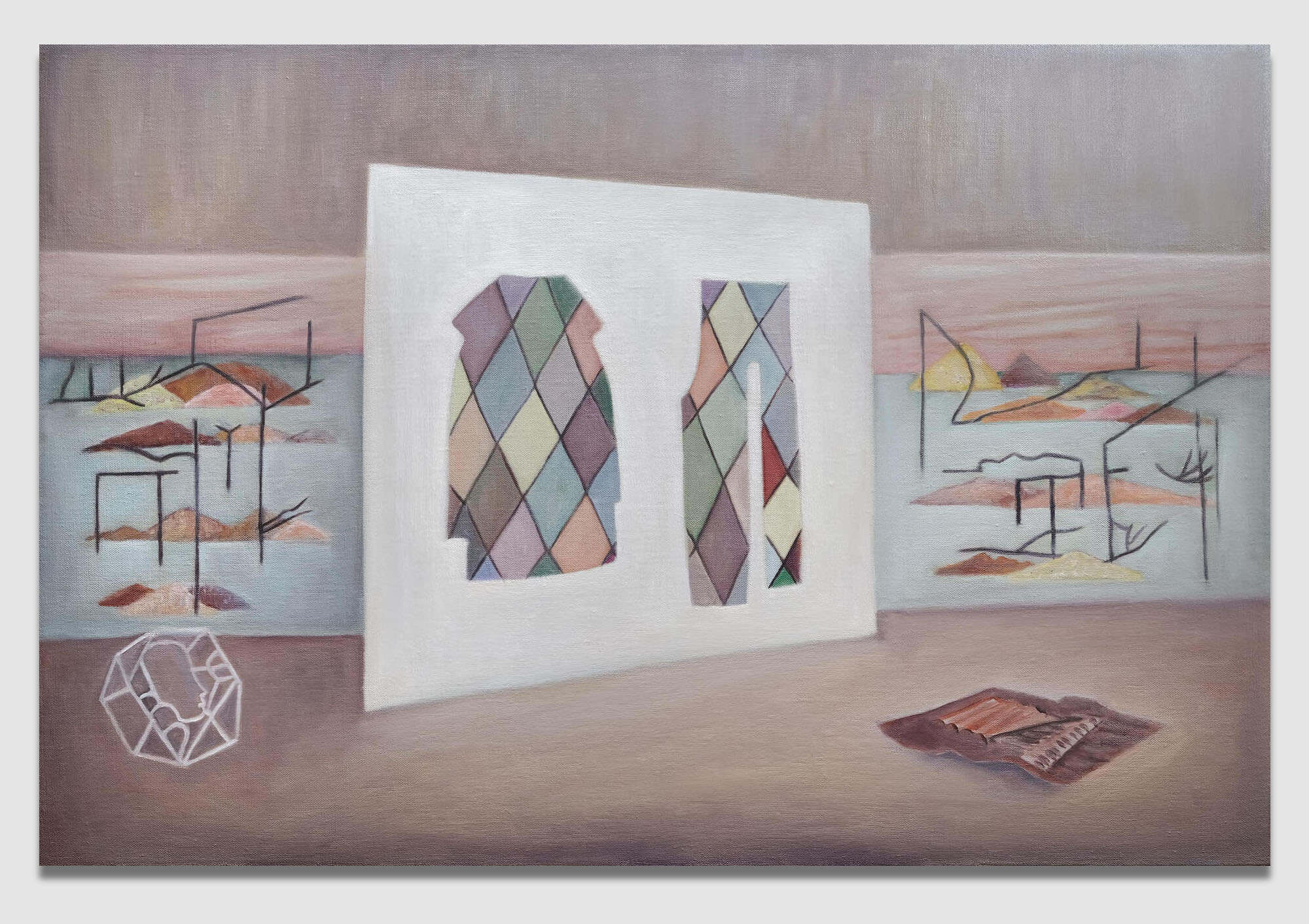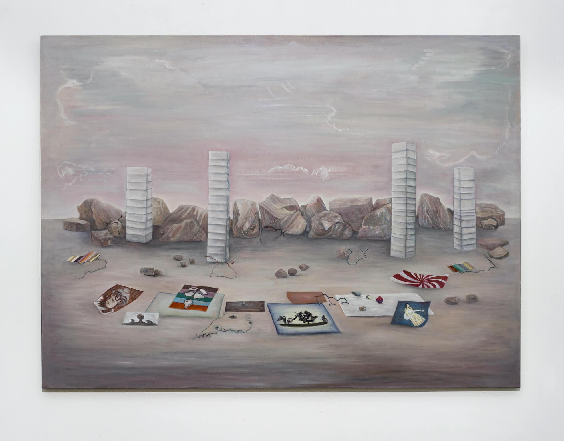 Sylvie Bouchard creates and explores an odd and fascinating world of dreamlike symbols and scenarios, in which characters, animals, objects and places gradually phase into existence. Her style draws as much on the western traditions of theatre and theatricality as it does on the fine art movements of symbolism, surrealism and new image painting. Her compositions depict a landscape that is a knowing projection of the faculty of imagination, in itself, beyond understanding and yet uncannily known. The things that seem to happen and to exist there are certainly related to classical archetypes and the contents of human subconsciousness. But a baffling and beautiful sense still retains its arbitrariness in these paintings, a resistance to explanation either by psychology or iconology. Bouchard deploys painterly effects slowly and coolly, mining a palette of chromatic greys, producing an imagery that slowly unfolds its loveliness as well as its more profound implications over time.
